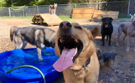 I have two kennel wings within one building. One for medium to big dogs. Another separate wing for small/medium breeds and geriatric dogs.I have new Mason Kennel runs. These are the best kennels on the market.The kennel is locked at all times for your pet’s security.Music plays continuously for their entertainment.The Big Dog wing has divider walls for privacy and to prevent fence fighting. This also ensures that smaller or more shy dogs are not intimidated by big dogs.The smaller dog wing is more open and has chain link fence between the dogs. This appeals to more social dogs and is not available to aggressive dogs.All kennels have cement runs inside and outside. There are doggy doors that allow your dog to go in and out all day long.Dogs are taken out into the fenced-in exercise yards so they can get out and stretch their legs...Or wet their legs in the pool on a hot afternoon!